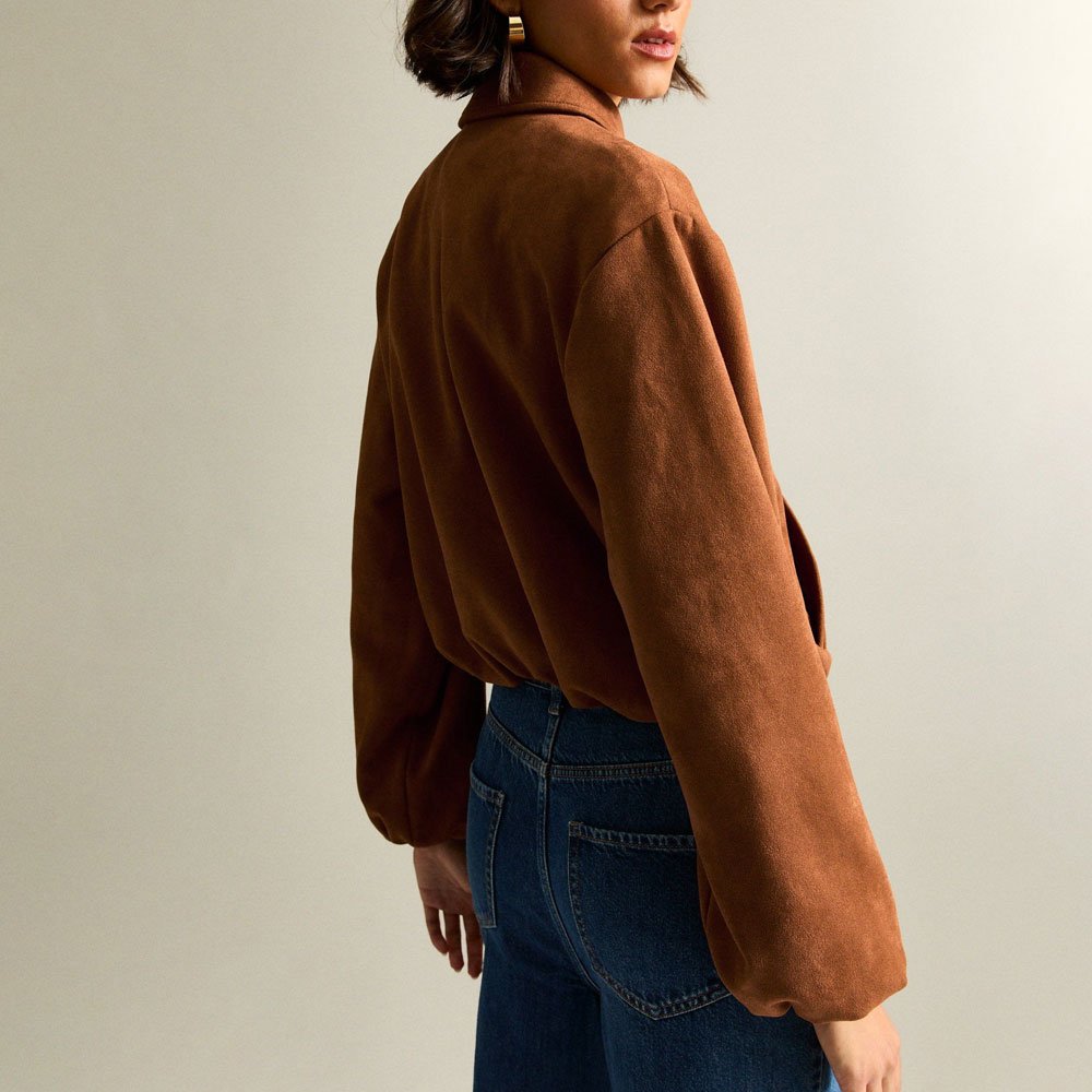 Tan Faux Suede Bubblehem Bomber Jacket