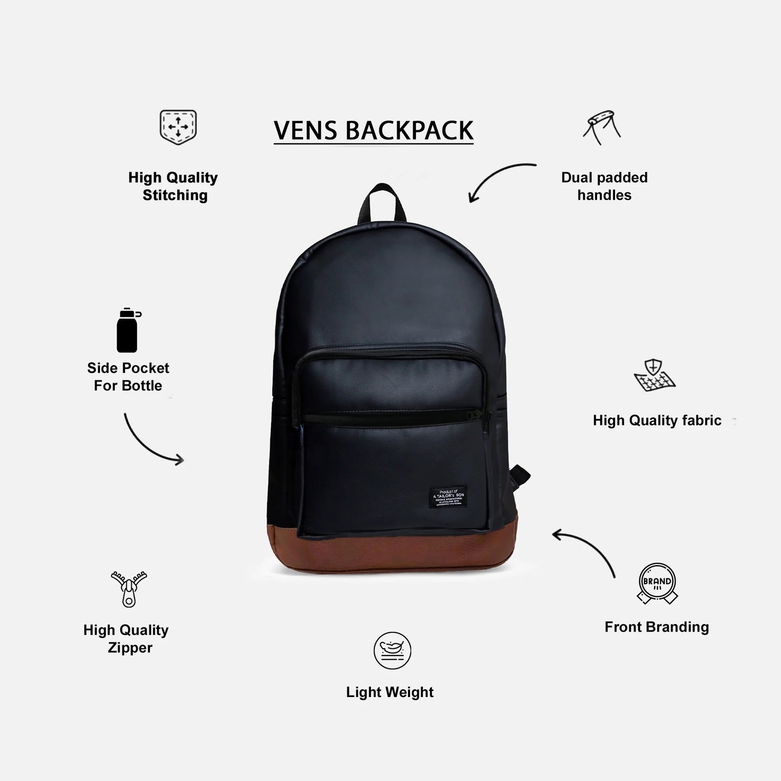 • Inside 1 zip pocket